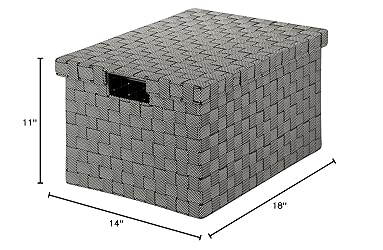 - Honey-Can-Do OFC-03703 Large File Box, Black/White. Store your documents in style with this contemporary file box that includes a matching lid. Compatible with letter and legal size documents, the box has built-in file racking and cut out handles on the side of the lid. The durable woven strapping will stand the test of time and add a unique look to your office. Coordinates with other pieces in Honey-Can-Do's collection of double woven office products.