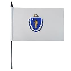 AZ FLAG Massachusetts Table Flag 5'' x 8'' - US state of Massachusetts Desk Flag 21 x 14 cm - Black plastic stick and base