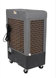 - Evaporative cooling fans are designed to pull hot, dry air through a water-soaked media filter using a water pump and fan. As the water evaporates into the air, the air's temperature will lower. They are optimal when used in hot, dry climates used to filter ambient air while increasing the condensation and delivering cool airflow. Evaporative cooling fans do not use refrigerants to remove heat like an air conditioner, so they are less effective in high humidity areas.Hessaire’s MC37M is the best and most effective cooling fan on the market for its size. It’s compact and yet packs a powerful blast of cooling with a patented winged prop design and three panels of high-density rigid media. Take it on the go easily with its four casters. It features oscillating louvers to cover a wide area quietly and efficiently. The manual controls make it easy for you to adjust between the four temperature settings to obtain optimal cooling anywhere you take the MC37M Evaporative Cooler.Cooling the air is only a part of the process; propelling the chilled air into your space is what brings you needed relief. Specially engineered features from Hessaire allows this mobile evaporative cooler to provide an airflow of 3,100 CFM to your area. Proprietary fan propeller design with winglets throws the blast of cool air further and yet is very quiet. Additionally, the air swing delivery system moves cool air left to right across the room to ensure that air is evenly distributed.
