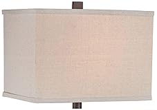 【Specifications】UL listed. 26" high overall. Base is 7 1/2" wide x 5 1/2" deep. Shade is 13 wide x 9 1/2" deep x 9" high. From tabletop to bottom of the shade is 16". Weighs 12.4 lbs. Uses one maximum 100 watt standard-medium base bulb (not included). On-off switch on socket. 【Charming Bedside Lighting】 Enhance your night stand or bedside table with bedside lamps that offer a perfect blend of functionality and style. These bedroom lamps for the nightstand feature a rectangle base and a geometric design that adds a decorative accent to your bed side. Ideal for creating a cozy atmosphere, these lamps bring a touch of rustic charm to any bedroom decor. 【Sophisticated Farmhouse Decor】 Add a single side lamp to your living room with this entry table lamp. The distressed finish and geometric design make it a perfect accent piece for your rustic lamps for the living room collection, providing both style and function. A modern lamp design from the Franklin Iron Works brand. Open, rustic look is ideal for farmhouse or modern interiors. 【Pre-Assembled Shades】Natural slate table lamp base. Note that because of the natural material used, each lamp will vary slightly in pattern and color tone. Rectangular metal pedestal at the very bottom. Rectangular box shade up top. 8-foot long brown cord. 【Versatile Rustic Accents】 Illuminate your side table or end table with a table lamp for the living room that combines farmhouse style with modern elegance. This Lamps Plus table lamp for the bedroom is perfect for your entryway or console, adding a distressed finish that complements your decor. Whether placed on your kitchen counter or used as an entry table lamp, it enhances your space with a warm, inviting glow.