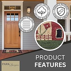 - Designed by the talented artist Teresa Kogut, a rustic rural scenery features a classic red farm house topped with a crow bird and beautiful botanical blooms in rich red, green, black, and cream colors. Handcrafted with premium quality hooked polyester yarn, durably woven to provide a comfortable surface to use day after day. Long-lasting and durable flooring accent perfect to enhance any kitchen or entryway space, providing an inviting path for guests and loved ones throughout the year.