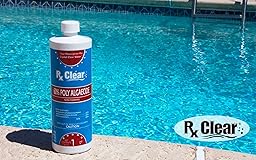 - The Rx Clear coats walls of the pool, keeping algae in suspension. Surfactant splits open algae cells, helping to destroy them. The Rx Clear Swimming Pool Algaecide works best in warm waters -- helping the product not stain the surfaces. Use 4-6 oz per 10,000 gallons. To avoid foaming, do not exceed beyond the recommended dosages.