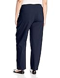 Flat-front pull-on pant 30 inch inseam Faux front pockets, functional back pockets Pull-on wide waistband with faux fly detail