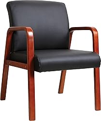 - Guest chair offers ideal guest seating with thick cushions, a wood frame and black bonded leather upholstery. Seat cushion is 3-16/17" thick while the back cushion is about 4-3/4" thick. Solid wood frame features front and back cross bars under seat for extra durability and strength. Four-leg, nonskid base is equipped with adjustable leg sliders for leg leveling. Chair also features fixed armrests to add to your comfort. Weight capacity is 250 lb. Seat measures 20-7/8" wide x 17-3/8" deep. Back size is 20-7/8" wide x 15-3/4 high.