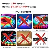 DC 12V power supply with a convenient ON/OFF switch on a 1.2-meter (3.8-foot) cable Converts 110-240V AC wall outlet into a 12V DC plug with a 5.5 x 2.1mm connector: 2.1mm (interior positive pole) and 5.5mm (exterior negative pole). Plug-and-play with a 5.5 x 2.1mm female plug (NOT suitable for 5.5x2.5mm plug) Maximum power output of 12 watts/1 amp, ideal for small LED lighting products that draw up to 12 watts of power, such as LED strip lights, aquarium lights, under-cabinet lighting, TV backlighting, string lights, and small electrical appliances like DC CCTV cameras, IR cameras, and speakers Our 12v LED power supply is not suitable for 16.4 feet LED strip lights. If the LED light exceeds 12 watts 1A, it will flash or not work because the 12v power supply cannot provide enough power. Please contact us via email if this happens, and we will recommend a suitable 12v power adapter Built-in IC chip with safety circuit protection function, including short circuit, overcurrent, overvoltage, and overload protection; CE certificated LED light power supply