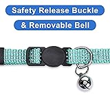 Pawtitas Reflective Teal Cat Collar with Safety Buckle and Removable Bell for Kitten and Cats