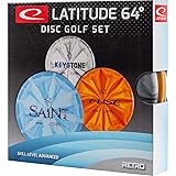 PERFECT BEGINNER DISC GOLF DISC SET - This frisbee golf discs starter set is the perfect choice for persons that are just starting out in the game. All discs are beginner friendly and come in a plastic that is better suited to less experienced players. This allows players to perform better even in their first few rounds, making the game more enjoyable from the start. Buying the right disc golf discs is an essential step when learning the game, and this frisbee golf set is an excellent choice DISCS INCLUDED - Included in this frisbee golf discs set is the Keystone (2, 5, -1, 1), a straight flying putter with high glide, making it easier to sink putts from all over the green, the Fuse (5, 6, -1, 0), an understable midrange that gives you an effortless straight flight, and the Saint (9, 7, -1, 2), a higher speed fairway driver that is an ideal disc for bombing long distance drives down the fairway ABOUT RETRO BURST PLASTIC - Retro Burst is Latitude 64’s baseline plastic and has an incredible feel and excellent grip in any weather conditions. These are affordable discs with an aesthetic burst effect that are perfect for beginners looking to try out the sport. Discs in Retro plastic are firm and will beat in faster over time compared to more premium discs, and will work into that amazing more understable discs flight path TRUSTED BRAND - Latitude 64 is known for its dedication to quality and performance in the disc golf world. As a leading manufacturer, they’ve crafted discs that are trusted by professionals and recreational players alike. With a focus on precision, innovation, and customer satisfaction DISC SPECIFICATIONS - All the discs in these disc golf starter kits will come within the weight range of 170-176g. Please note that when you purchase this set that the disc and stamp color will vary