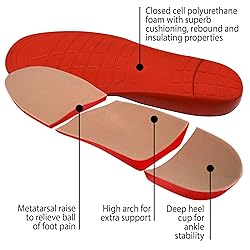 Medical grade plastazote foam top cover self-molds to your feet, absorbing shock and pressure as well as reducing friction Form to your foot to evenly distribute your weight, supporting your heel, arch and metatarsal with comfort and balance. Help relieve pain of aching, tired, swollen, sore feet from problems like diabetes, arthritis, ulcers, and other skin conditions. Arch support & ball of foot support keep your feet biomechanically aligned to keep your feet from pronating, which can lead to other painful foot, leg, and back ailments. Help prevent Plantar Fasciitis, Flat Foot pain, Shin Splints, common foot pain, heel pain, and lower back pain.