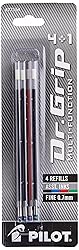 PILOT Dr. Grip 4+1 Multi-Function Ballpoint Ink Refills, Fine Point, Black/Red/Blue/Green Inks, Assorted Colors,4 Count (Pack of 1) (77154)