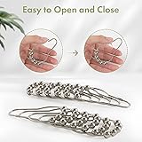 - Decorative Shower Curtain Hooks Product Features - Stainless Steel Polished Nickel Color - Polished for a Great Look - Easy to Install - Friction Free, Gliding Action Sturdy and Secure Structure Allows Effortless Movement With all our products manufactured to the highest quality standards, we are confident that you will enjoy Amazer shower curtain hooks for many years to come. The design features effortless shower curtain rings engineered to glide effortlessly across the rod with virtually no effort at all. The hooks are closed, unlike the more popular C-shaped hooks. This means you can pull the curtain as fast as you like with no worries or accidents. Easy, Simple Installation To install the shower curtain rings, simply open the curtain hook clasp and loop them in the openings of your shower curtain and/or liner. Then, snap the clasps and slide the rings onto the shower rod. Then, follow your shower rod’s instructions to fasten the rod in your shower. To install the hooks to a fixed curtain rod, simply open the curtain ring clasp and stretch the ring around the curtain rod. The heavy duty materials used in manufacturing the hooks allow the hooks to stretch about 1 inch without snapping. When you are done stretching the rings, they will return to their original shape.