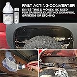 Black Star Rust Converter – No more sanding, blasting, scraping, or etching. Instead, our 21st century technology converts and transforms rust into a slick polymer resin coating. A phenomenal rust treatment, Black Star rust converter stops more rust from forming. Won’t Re-Rust – After converting your rust into a beautiful, black, hard, corrosion-resistant polymer resin that seals out moisture, the treated rust will never reoxidize. Instead of being just a harsh rust remover, Black Star is also a rust inhibitor and chemically reacts with the rust to convert it into a useful primer or final coating. Unlimited uses – If it rusts, Black Star goes to work! Used everywhere from oil rigs to farm equipment. From fences, metal roofs, bridges, marine applications and steel sheds to grain bins, cars, trucks, trailers, and tools, rust is simply no match. Paint primer – Rust is difficult to paint over, and paint won’t stop your metal from re-rusting. Black Star not only acts as a rust converter and stopper, but also is a phenomenal primer for painting your metal and achieving a vivid, smooth color. Easy to Use – No more difficult rust removing! Instead of damaging the metal trying to remove rust, just spray, brush, or roll on Black Star Rust Converter and improve the integrity of your metal without worrying about stripping, wire wheeling, grinding or sand blasting.