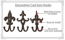 Set of 3 cast iron wall hooks– Hang your coats, jackets, hats, and more in style with this decorative home organization product. Use these cast iron wall decorative wall hooks your doorway, hallway, living room. Hang your towels and robes in your bathroom. This wall mounted hanger has 2 of hooks. The Measure: 3.5" x 3.8" x 4" Wide x 6.75" Hight. Premium, solid, heavy-duty product - This iron wall hook is a solid piece, crafted with cast iron from recycled metal. This wall coat rack with hooks is made from recycled iron and treated with special coating, giving the item vintage or rusted look, while protecting the item from rust and wear. Convenient and easy to use - Attractive design of this item does not make it only a decorative piece. It is easy to mount with included screws and anchors. Hanging your coats, towels or other personal items is easy. Thick, rounded hooks will not rip or damage your belongings. Compliment metal wall mounted hanger with other cast iron decor items. Vintage, unique design - Our wall mount hooks can be a great addition to your home decor. This is due to its detailed design which can fit well in your home’s entrance, front door, or wall space. It simply captures the attention of anyone who sees it. They are very attractive and make your storage look very charming. This storage solution the way to wow your guests when they want to hang their clothes, scarves, hats, and coats. Wow yours guests or give this item as a present. Quality and support: We created a great product for you. Our promise to you, our customer, is that you will always be treated fairly and with respect. You will not be disappointed with our industry leading policies and customer service.