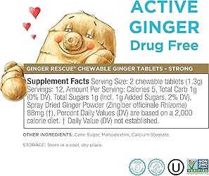 DRUG FREE CHEWABLES: High quality and purity, strong flavored Ginger Rescue tablets are kid-friendly and made with 88mg ginger actives per serving to help promote digestive health. GREAT TASTE & INGREDIENTS: Premium quality, simple ingredients and made with real ginger, these drug free chewable tablets feature no artificial sweeteners, are non-GMO, kosher certified, vegan and gluten free. Convenient small package fits in your pocket or purse. HEALTHY & EFFECTIVE: Great tasting and kid friendly, these tingly, chewable tablets are an enjoyable and effective alternative to digestive aids, potions and gadgets. #1 IN GINGER: We Know Ginger Best. As a family owned business we’ve pioneered unique and award winning products for nearly 40 years; creating healthy, stimulating and delicious ginger with simple, clean, fresh ingredients.
