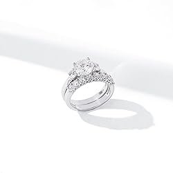 STYLE: This 3-stone classic bridal ring set is 3mm wide for each band featuring brilliant round cut Infinite Elements Cubic Zirconia stones; the engagement ring features a larger stone framed by two smaller stones and a matching wedding band. The total carat weight is 3.3 cttw MATERIAL: Crafted in 99.9% platinum over 925 sterling silver DETAILS: Hypoallergenic and suitable for sensitive skin, nickel free and lead free CARE: Plated with anti-tarnish coating for a more lustrous appearance and durability; store in a cool, dry place in an air tight container and limit exposure to extreme temperatures, cleaning products, and perfume