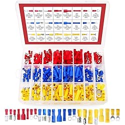 - Package Includes: 1 x 360PCS Assorted Crimp Terminals With Case Explanation: Red Ring: 40PCS A.W.G: 22-16 Wire range: 0.5-1.5mm² Max current=19A Material : Copper + PVC Blue Ring: 30PCS A.W.G: 16-14 Wire range: 1.5-2.5mm² Max current=27A Material : Copper + PVC Yellow Ring: 20PCS A.W.G: 12-10 Wire range: 4-6mm² Max current=48A Material : Copper + PVC Bullet Malel: 20pcs Red, 15pcs Blue, 10pcs Yellow Female Bullet Butt: 20pcs Red, 15pcs Blue, 10pcs Yellow Red A.W.G: 22-18 Wire range: 0.5-1.5mm² Max current=10A Material : Copper + PVC Blue A.W.G: 16-14 Wire range: 1.5-2.5mm² Max current=15A Material : Copper + PVC Yellow A.W.G: 12-10 Wire range: 4-6mm² Max current=24A Material : Copper + PVC Spade: 20pcs Red, 15pcs Blue, 10pcs Yellow Spade Female(Semi-insulated): 20pcs Red, 15pcs Blue, 10pcs Yellow Spade Female(FemaleFully Insulated): 20pcs Red, 15pcs Blue, 10pcs Yellow Red A.W.G: 22-18 Wire range: 0.5-1.5mm² Max current=10A Material: Copper + PVC Blue A.W.G: 16-14 Wire range: 1.5-2.5mm² Max current=15A Material: Copper + PVC Yellow A.W.G: 12-10 Wire range: 4-6mm² Max current=24A Material : Copper + PVC Butt Splice: 20pcs Red, 15pcs Blue, 10pcs Yellow Red A.W.G: 22-16 Wire range: 0.5-1.5mm² Max current=19A Material : Copper + PVC Blue A.W.G: 16-14 Wire range: 1.5-2.5mm² Max current=27A Material : Copper + PVC Yellow A.W.G: 12-10 Wire range: 4-6mm² Max current=45A Material : Copper + PVC