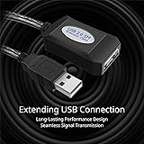 Universal Compatibility: Connect a variety of devices with this Typa A 2.0 extension USB cable, including gaming controllers, printers, scanners, hard drives, flash drives, printers, scanners, speakers, mouse, keyboards, PC, and more, ensuring seamless compatibility as a USB A Extension Effortless Extension: Our USB A extender cable provides a convenient way to extend your USB connection by 15 feet. No external adapter is required, providing the reach you need for your USB to USB extension cable Active Signal Enhancement: This USB active extension cable with a built-in amplification chipset ensures clarity of signal at longer distances and boosts full-speed data transfer rates of up to 480 Mbps, perfect for USB mouse extension and other peripherals Flexible & Durable: Our USB A extension cable has premium shielding and connectors, making it durable and flexible build for reliable everyday use. USB cord extension can also be used as an adapter and repeater Plug and Play: Our Type A 2.0 female to male USB cable makes it a breeze for all your USB female to male cable, cord, and wire needs. Installation is quick and driver-free. Provides up to 250mA of power to the connected device