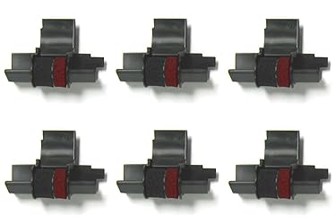(6 Pack) Calculator Ink Roller Fits Sharp EL-1801V EL-1750V EL-1611V Casio HR-170RC HR-200RC HR-300RC Canon P23-DHV-3 and More Black/Red IR-40T CP-13 EA-772R Compatible/Replacement by COMPUMATIC