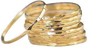 Sold Individually: These rings are sold PER RING, allowing you to customize your stack according to your personal style and preference Premium Material: Each stacking ring is crafted from the finest quality 14k Gold Filled wire that is smelted in the USA for superior durability and lasting shine Minimal Design: Dainty hammered 14k Gold Filled bands feature a delicate hammered texture with glowing gold finish for rustic, understated luxury Custom Made: Made to order just for you, ensuring each ring is crafted with attention to detail and personalized to your specified ring size Versatile Styling: Super thin stackable design allows you to wear alone for a minimalist look or layer multiple rings together for a customized statement