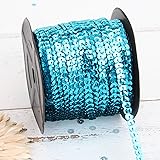 - 80-yard rolls of high quality sequin chain. Sequins are 6mm hexagon cup sequins in aqua. Use sequin trim on all of your craft or sewing projects.Add sparkle to costumes, apparel, home decor, paper crafts, scrap booking, belts, purses and more.