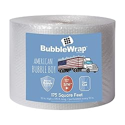 Protect your essentials : Our Small Bubble Wrap 3/16" bubble wrap provides maximum protection and is the premium shipping supplies for Moving and packing of heavy duty materials Barrier Bubble Technology: Our custom nylon blend, notably minimizes air loss. Small bubble wrap with Barrier Bubble Technology ensures your business and packing materials for moving arrive safely Perforated every 12" : Each roll of bubble wrap roll measures 175 feet and has perforated sheets so you can effortlessly wrap furniture, tv, mirror, glassware, dishes, art, glass and window insulation Pack like a Business Pro: Our bubble wrap for packing, unlike paper, which can increase the weight of your shipping boxes provides maximum cushioning for your essentials without the extra weight 12" wide versatile packing materials: Small bubbles offer the preferered alternative to packing foam because American Bubble Boy bubble wrap offers both surface and void protection