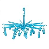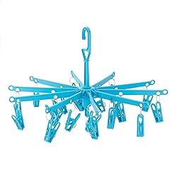 - Make your laundry day that little bit easier with this clip and dry hanger. Perfect for smalls, underpants, socks, baby clothes and towels, you can clip up to 20 items from this foldable laundry drying rack. With 10 arms and 2 strong spring clips on each arm, you can hang your laundry easily and help your socks dry more quickly. The turquoise color plastic looks great, while the design itself has been perfected by Hangerworld to not rust or break easily. So you can use this cloth drying rack both indoor and outdoor to minimize drying time and utilize the natural drying power of the sun without having to purchase additional drying racks for outdoors. The folding design also makes this a perfect drying rack for camping and travelling. Also incredibly useful for diaper drying rack and dryer for baby and toddler clothes, socks and bibs.