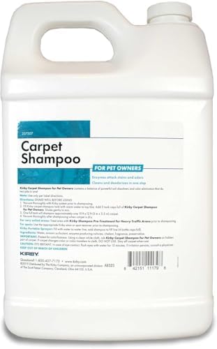Kirby Carpet Cleaning Solution is a professional-grade formula designed to deep-clean carpets and rugs while eliminating dirt, stains, and unwanted odors. This machine-compatible cleaning detergent works seamlessly with Kirby Shampoo Systems and most other leading carpet cleaning machines. • Removes Deep Stains & Odors – Lifts dirt and grime from high-traffic areas. • Fast-Drying, Residue-Free Formula – Ensures quick drying without over-saturation. • Lavender-Scented Freshness – Leaves a subtle, pleasant aroma after cleaning. • Kid & Pet-Safe – Non-toxic when used as directed, making it safe for homes. • Value-Packed Size (128 fl oz) – Provides multiple deep-cleaning sessions for a cost-effective solution. Ideal for homeowners, pet owners, and anyone looking to refresh their carpets with professional-grade results.