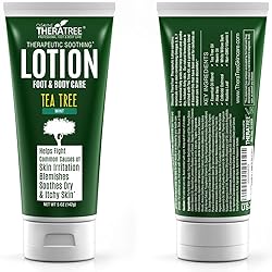 - Oleavine TheraTree Soothing Tea Tree Oil Lotion is infused with botanicals rich in skin nourishing and moisturizing Omegas 3, 6, 7 & 9, Aloe Vera, Colloidal Oatmeal, & Natural Vitamin E, along with a blend of broad-spectrum essential oils that have been used for centuries as natural care for skin discomfort and poor complexion. - Works amazing in combination with Oleavine TheraTree Soap, Tea Tree Foot & Body Exfoliating Scrub or Soothing Foot Soak as part of our 3-Part Foot & Body Care System for particularly stubborn issues. - Aromatherapy Grade Essential Oils including Premium Organic Australian Tea Tree Oil help soothe skin discomfort, foot & body odor and poor complexion. - Fast Absorbing Nourishing Botanicals including Aloe Vera, Colloidal Oatmeal, & Non-GMO Natural Vitamin E moisturize and soften calluses, dry, itchy, irritated skin. - Peppermint, Menthol, Arnica and Naturally Occurring Salicylic Acid from White Willow Bark helps provide cooling lasting relief.
