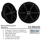 PACKAGE BUNDLE INCLUDES: JVC KD-X38MBS Single DIN Marine MotorSports Bluetooth USB AUX AM/FM Radio Receiver, JVC 6.5" 100 Watt Max 2-Way Speaker (Black, QTY 6), JVC RMRK62M Marine Wired Remote Control, Enrock Wired AM/FM Radio 22" Antenna (Black), Pyle PLMRA400 Marine 4 Channel 400 Watt Amplifier, Enrock 50 Feet 16 Gauge Marine Speaker Wire RECEIVER: JVC KD-X38MBS marine digital media receiver stands up to salt, spray, sunlight with a conformal-coated circuit that resists moisture damage. Featuring built-in Bluetooth for hands-free calls and streaming music, an option for satellite radio, and USB and AUX connections for your digital devices. MARINE AUDIO SPEAKER: These JVC 6.5" speakers are perfect for ATV, UTV, Wave Runners, Motorcycle, and Golf Carts. They are suited and designed for any outdoor application! MARINE BOAT AMPLIFIER: This Pyle PLMRA400 4-Channel amplifier is powerful with its 100 WATT x 4 max or 400 WATT and dual MOFSET power supply. Comes with dual adjustable input GAIN level controls. Marine rating of IP-01, it is waterproof ready. WIRED REMOTE CONTROL: The JVC RM-RK62M marine wired remote control allows you to navigate your tunes from your stereo while keeping your stereo in a safe place. The remote is fully splash-proof providing you with the convenience of track selection, fast forward and rewind, volume and source selection.