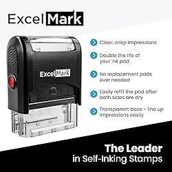 - Stay organized and ensure efficient communication with the use of this ExcelMark custom self-inking rubber stamp -- perfect for at home or the office!