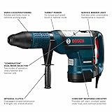 El martillo rotatorio BOSCH RH1255VC de 2 pulgadas SDS-max tiene Turbo Power, que proporciona al herramienta un aumento de torque y velocidad en modo martillo. También ofrece 14.1 pies-libras de energía de impacto para una potencia de primera calidad. Con menos de 27 libras, tiene una relación rendimiento-peso sobresaliente en un martillo de 2 pulgadas. Cuenta con Control de vibración para un mayor control del operador mientras mitiga las vibraciones en el mecanismo del martillo y en el mango. Este martillo proporciona circuitos de Respuesta constante para arranques suaves, colocación precisa de agujeros y velocidad constante bajo carga. La posición Vario-Lock permite rotar y bloquear la broca con precisión. Y el sistema de brocas SDS-max proporciona cambios de brocas sin herramienta.