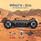 PREMIUM AUDIO QUALITY - Enjoy high-quality sound with our 800 Watt waterproof Bluetooth speaker. With dual 6.5'' speakers and a 2-way audio system, it delivers crisp, clear, and powerful sound, making it the ideal Bluetooth speaker for any adventure. VERSATILE MOUNTING OPTIONS - This waterproof Bluetooth speaker is perfect for vehicles like ATVs, UTVs, golf carts. The 'plug & play' connection and the included heavy-duty straps make installation a breeze, so you can start streaming music quickly. BUILT TO LAST - Made for durability, this outdoor Bluetooth speaker features a rugged, weatherproof, and water-resistant design. Enjoy seamless wireless music streaming from your iPhone, Android, or tablet, regardless of the weather conditions. TECHNICAL SPECS - The speaker system has 6.5'' poly injection speakers and 1'' dome tweeters which provide 800 Watt max output with 400 Watt RMS. With an IP-44 rating, a 90 dB signal-to-noise ratio, and Bluetooth 4.0, it offers top-notch performance. LED LIGHTS - Transform your music sessions with multi-color LED lights which have 19 dynamic modes and adjustable brightness. These lights dance to your music, creating an engaging atmosphere. Comes with a remote control for easy customization.