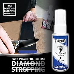 Made by Jende Industries with the highest quality and concentration for fast and consistent results Our Poly Diamond Emulsion formula is superior to other brands Convenient 2 oz. spray bottle for easy application on Jende Nanocloth Ultra, balsa, leather, nanocloth, kangaroo, etc. Easy application and fast drying formulation 1 Micron is best for touching up between sharpening, and for finish stropping after sharpening