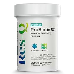 - Res-Q Probiotic has 20 billion active cultures and five probiotic strains. It withstands stomach acids and goes straight to work to restore balance in your intestinal tract. This helps keep you regular, prevents bloating and supports a healthy immune system.