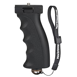 Ergonomic design for shock-proof & muscle fatigue relief : Finger-shaped handle stabilizer for smoothly & stablely shooting to improve the footage obvisouly & efficiently, for long-time holding and muscle fatigue remission when work. Easy-mounting, plug & play : Universal 1/4 screw thread and easy mounting thumb knob locking system for all DSLR Mirrorless camera, camcorder and other equipments, well to make plug & play easy. Light & Solid & Comfortable : Made of high-quality ABS material, skin-like coating for a comfortable holding to enjoy a better experience. Safety wrist strap tether avoid drop risk : Additional secure wrist strap tether for easy and safe holding to avoid dropping risk, best choice for youtuber tiktoker outdoor travel photographing & vlogging. Widely use: Compatible with all DSLR Mirrorless camera, camcorder, LED video light, long focus lens, and any other equipment with 1/4" thread hole.