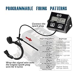 - Runleader RL-HM011A Self Powered Engine Digital Maintenance Reminder Tachometer contains tachometer, hour meter, service timers ,Replaceable battery and waterproof design Product Features: 1 Hour Meter (HOURS) Features---- Help you track how many hours you put on your engine. ■ When engine is off, display shows total run time of engine and remains visible. ■Total Hours reading displays from 0 to 99,999 Hours, 0.1 hours accuracy, ■Total hours can reset 2 Service timers (SERVICE) Features---- Countdown tracking time, Reminding maintenance, Like Air filter Replacement ■ Programmable maintenance interval time from 0-99999 hours ■ When the maintenance time arrives, the service warning icon flashes to remind ■Countdown tracking service reminder time, 0.1 hours accuracy 3 Tachometer Features---- Display reads engine current RPMs , Help adjust engine idle ■ Accurately records your RPMs when the engine is running ■ Can be programmed for different engine firing patterns. ■ Tachometer displays from 0-25,000 RPM with 10 RPM resolution ■ RPMs update time refresh rate: 0.5S 4 Other Features ■ Internal replaceable CR2450 battery , Data retained after battery change. ■ When the engine off, the meter automatically shuts down after 2 minutes; press the button to read the screen , Data retained after shutdown ■ LCD Screen size 12.5mm×42mm ■ Standard wire length is 1750mm (5.74 ft) ■ Easy to install, including cable tie,CR2450 Battery, Instruction manual ■ Patent, CE ROHS certification ■ Waterproof rating: IP65. 6 Works on: Suitable for all types of gasoline engines: ■ 2 stroke single cylinder / 2 stroke 2 cylinder / 4 stroke 4 cylinder/ 4 stroke 2 cylinder /4 stroke single cylinder Gasoline engines.