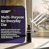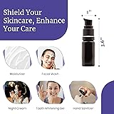 P𝗿𝗲𝗺𝗶𝘂𝗺 UV G𝗹a𝘀𝘀 𝗳𝗼𝗿 Ma𝘅𝗶𝗺𝘂𝗺 P𝗿𝗼𝘁𝗲𝗰𝘁𝗶𝗼𝗻: Each bottle is made from lab-tested ultraviolet (UV) black glass that blocks harmful light while allowing beneficial UV-A and infrared rays to preserve contents longer, ideal for essential oils, serums, and natural skincare products L𝗲a𝗸-P𝗿𝗼𝗼𝗳 P𝘂𝘀𝗵 P𝘂𝗺𝗽 D𝗶𝘀𝗽𝗲𝗻𝘀𝗲𝗿: Precision pump design ensures a mess-free experience with no spills or leaks. Dispenses smoothly and evenly, perfect for liquids like toner, beard oil, hand sanitizer, and lightweight hair products R𝗲𝗳𝗶𝗹𝗹a𝗯𝗹𝗲 D𝗲𝘀𝗶𝗴𝗻: Reduce waste with our reusable glass bottles. Built to last, these pump containers are a sustainable alternative to disposable plastic, clean easily and refill again and again P𝗲𝗿𝗳𝗲𝗰𝘁 𝗳𝗼𝗿 T𝗿a𝘃𝗲𝗹 𝗼𝗿 E𝘃𝗲𝗿𝘆𝗱a𝘆 U𝘀𝗲: Compact 15 Ml (0.5 fl oz) size meets TSA carry-on guidelines. A must-have for on-the-go grooming, personal care kits, DIY beauty routines, or professional use at salons and spas V𝗲𝗿𝘀a𝘁𝗶𝗹𝗲 G𝗹a𝘀𝘀: Keep your favorite products fresh and organized with this convenient bottles. Great for batching homemade lotions, essential oil blends, facial mists, or distributing product samples. Products have Dimensions of Height: 3.6"/ Diameter of Bottle : 1"/ Diameter of Opening: 0.4"/