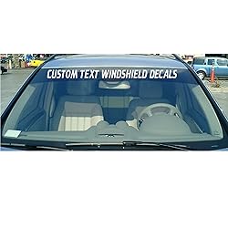 - This vinyl windshield decal will be made to maximum size 3.75"x 36" unless your text is very short. Create your custom decal by entering your text and selecting from the color options. The text decal will be made straight with no arcing. These decals can be used for other applications and will stick to any clean smooth surface. Great for advertising your business. Made from outdoor weather resistant vinyl material.