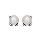 STYLE: These classic stud earrings feature 6mm round cultured pearl stones MATERIAL: Crafted in sterling silver with cultured pearl stones DETAILS: Classic solitaire style in 4-prong basket setting with butterfly backing; June birthstone earrings CARE: Store in a cool, dry place and limit exposure to extreme temperatures and household cleaning products; clean with a soft cloth and warm soapy water