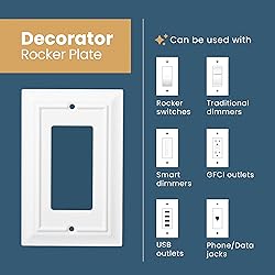 STYLE: Our Classic Architecture collection of wall plates and light switch covers provides your home with subtle elegance. FINISH: The Pure White finish gives a clean and organized look to your kitchen, bedroom, and living room. SIZING: This configuration of wall plates and outlet covers is perfect for Double ports. MATERIALS: We work with top quality materials to ensure your electrical outlets and light switches are both decorative and safely protected. CAUTION: Turn off the power at your fuse box or circuit breaker before installing to avoid electric shocks. Handle with care as wall plate edges may be sharp.
