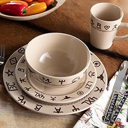 - 506 Features: -Heavy rim. -Color: Sand. -Design color: Brown. -Microwave and dishwasher safe. -Mug capacity: 10 Ounces. -Rope and brands design. Color: -Sand; No. Style: -Contemporary. Material: -Stoneware. Number of Items Included: -16. Dimensions: Overall Product Weight: -19 lbs.