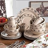 Durable Stoneware Construction: Made from sturdy stoneware material for long-lasting use. Casual Round Shape: Fun round shape and size for everyday meals. BPA Free: Contains no BPA for healthier cooking and eating. Microwave and Dishwasher Safe: Can be used in the microwave and dishwasher for easy cleaning. 16 Piece Set: Includes 16 dinner plates, bowls, and mugs for all your mealtime needs.