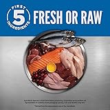 - Give your canine companion the protein-rich nutrition it needs with ORIJEN Original Dry Dog Food. This grain free* dry dog food kibble is packed with antioxidant-rich ingredients and Vitamin E to help support a healthy immune system and provides naturally occurring Omega-3 and Omega-6 fatty acids to support healthy skin and a shiny coat. This ORIJEN dog food recipe is made with 85 percent** fresh or raw quality animal ingredients like free-run*** chicken, free-run*** turkey and wild-caught fish. The first five ingredients of this high protein dog food are fresh or raw chicken, turkey, salmon, whole herring, chicken liver, giving your dog a strong source of protein, vitamins and minerals. ORIJEN WholePrey ingredients including organs and bones to provide your dog with the most succulent and nutrient-rich parts of the prey. Our included fresh ingredients are delivered refrigerated and our included raw ingredients are delivered frozen. NOURISH AS NATURE INTENDED. *Produced in a facility that also processes grains **Approximate 85%, Derived from the unprocessed state of the ingredients. ***Our free-run chickens and turkeys are not housed in cages and are able to move in a barn without outdoor access.