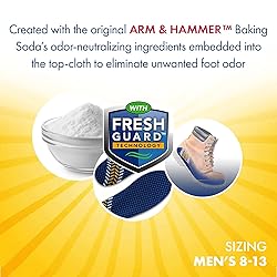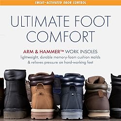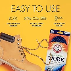 Ultimate Feet Comfort - The Arm & Hammer Work Insoles’ lightweight, durable memory foam cushion molds relieves pressure on hard working feet; Superior arch support and contoured heel cup provide instant shock absorption Fresh Guard Technology - Featuring the original Arm & Hammer Baking Soda and odor neutralizing ingredients embedded into the top-cloth to neutralize and eliminate unwanted foot odor; This formula will leave feet feeling fresh all day long Anti-Fatigue Design - The soothing design of these work boot insoles help you stay on your feet longer and more comfortably; The Odor Control formula is sweat activated upon contact to help keep feet fresh Fits All Types of Shoes - Designed to fit men’s shoe sizes 8-13 and women's shoe sizes 6-10; The trim-to-fit design helps you easily trim them to fit your foot size; Trim with scissors using the trim guide on the bottom of the insole Arm & Hammer Trusted Quality - A pure and simple trusted solution for more than 170 years; Committed to purity and quality, Arm & Hammer creates a natural, effective and economical choice for taking care of every room in the house
