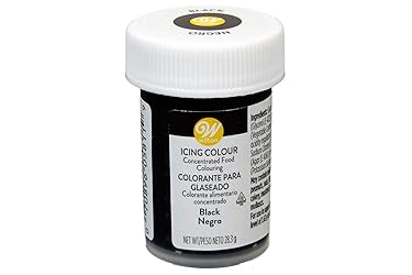 Wilton Black Icing Color Net Weight: 1 oz (28.35 grams) Contains: one (1) 1 oz jar ✸ Made in a facility that also processes peanuts, tree nuts, fish, shellfish, milk, soy, and wheat products ✸ Made in the United States