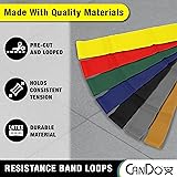 - Achieve a satisfying full-body workout with CanDo Resistance Band Loops! Sold in a range of resistance levels and lengths, these loops are conveniently pre-formed. Reduce your setup time; no cutting or tying needed! It’s great for all ages and fitness levels, from beginners to experienced athletes and those recovering from injuries. CanDo Resistance Band Loops are specially sized for upper-, lower- and total-body workouts. Use them for general exercise, physical therapy, sports training, activation, toning, weight loss, Pilates, yoga and more! These resistance bands work all areas of the body, including the arms, legs, hips, glutes, shoulders, abdomen and more. Use them to build muscle and increase mobility in your legs, tone your shoulders and arms, tighten your core and sculpt a firm booty. Our band loops are made from high-quality, durable latex that keeps its shape from your first set through your last! These bands are 3" wide for easy wear and comfort, and maintain consistent tension throughout use. There’s nothing for you to do except get moving! With CanDo Resistance Band Loops, you’ll never miss a workout! These bands are lightweight and easy to pack. Its extreme portability gives you the option of exercising at home, or bringing the bands to the gym, physical therapy, outdoors and while traveling. CanDo Resistance Band Loops are available in three sizes and seven resistance levels. The 10" loops are specially designed for upper-body workouts, 15" loops are for lower-body workouts and 30" loops are for full-body workouts. The 10" loop is equivalent to 20" of the flat band folded and tied together. The 15" loop is equivalent to 30" of the flat band folded and tied together. The 30" loop is equivalent to 60" of the flat band folded and tied together. Seven color-coded resistance levels include: x-light (yellow), light (red), medium (green), heavy (blue), x-heavy (black), xx-heavy (silver) and xxx-heavy (gold). Our band loops are sold individually or in packs of 10. They’re also sold in sets: three-piece sets that include each length of a chosen resistance level; five-piece sets that include x-light (yellow), light (red), medium (green), heavy (blue) and x-heavy (black) resistance bands, all in a specified length (10", 15" or 30"); or five-piece sets in packs of 10.