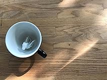 These cups have humorous, fun creatures in the bottom that are slowly revealed as you drink. 11 fluid ounce (325 ml) Made of high-fire ceramics Exterior color is Black; interior color is White Diameter: 4.0 inches (10 cm) / Height: 3.2 inches (8 cm) Dishwasher safe and microwavable Perfect gift for coffee and tea lovers, animal lovers, and holiday/office presents. Boxed in premium packaging.
