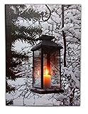 BANBERRY DESIGNS LED Wall Art - Winter Lantern Lighted Canvas - Light Up Snowy Scene With a Glowing Black Lantern - Light Up Canvas Print - Christmas Wall Art - Measures 11.75" x 15.75"