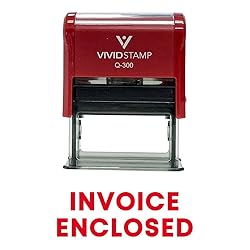 - The Vivid Stamp Invoice Enclosed Self Inking Rubber Stamp is a practical tool for clearly marking envelopes, packages, and documents containing invoices. Constructed with a durable plastic body and a precision cut rubber text plate, this stamp delivers crisp, legible impressions for consistent use in offices, shipping, and administrative settings. Its self inking design features a re inkable stamp pad, allowing for quick ink refresh without replacing the entire unit. Available in three convenient sizes, it works well on a variety of surfaces and document formats. Ink color options include red, blue, and black, providing flexibility to match your workflow, while the stamp body comes in a variety of colors for easy identification in shared workspaces. With an ergonomic shape and smooth press action, this stamp ensures reliable, even impressions with minimal effort. Ideal for businesses, offices, and shipping departments, it helps ensure that invoices are clearly identified and processed efficiently.