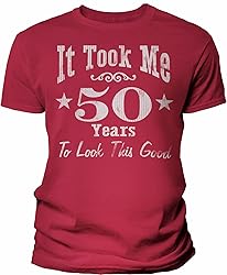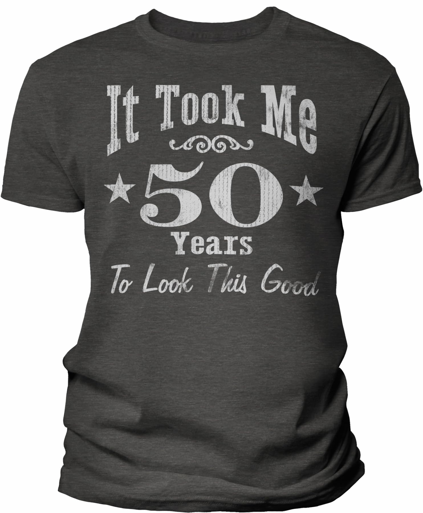 - Birthday gifts for men turning 50 - It Took Me 50 Years To Look This Good - 50th birthday shirt for him. This t-shirt design is available in a men's or women's fit, sizes Sm-5X with several color options to choose from. This design was created by ShirtInvaders and custom screen printed in our Texas production facility using only the highest quality materials. Printed with an eco-friendly, softened plastisol or water based ink to create a vibrant design that is also soft to the touch and very easy to wear. Not only is it easy to wear, but it will last too! This is not just another last minute, random birthday gift idea designed for single use... ShirtInvaders branded t-shirts are created to be worn. A 50th birthday gift idea that will be loved, appreciated and actually used! A great option for a unique birthday gift, Father’s Day gift, Christmas gift or just an unexpected surprise… and with every year offered, this shirt would make a great gift for anyone. Our t-shirts work for any and all occasions. We have a large selection of dated or year specific designs and gifts to choose from with a variety of color options and sizes to fit everyone. ShirtInvaders brand designs are created with our unique vision, style, and attitude. We want to impress everyone with our quality, our creativity, our speed and our motivation... From our customers and competitors to our own designers and printers. We’re not just a t-shirt shop, we are a unique brand with a hunger for success, a motivation to impress and a drive to set new industry standards.