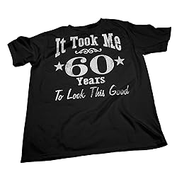 - Birthday gifts for men turning 60 - It Took Me 60 Years To Look This Good - 60th birthday shirt for him. This t-shirt design is available in a men's or women's fit, sizes Sm-5X with several color options to choose from. This design was created by ShirtInvaders and custom screen printed in our Texas production facility using only the highest quality materials. Printed with an eco-friendly, softened plastisol or water based ink to create a vibrant design that is also soft to the touch and very easy to wear. Not only is it easy to wear, but it will last too! This is not just another last minute, random birthday gift idea designed for single use... ShirtInvaders branded t-shirts are created to be worn. A 60th birthday gift idea that will be loved, appreciated and actually used! A great option for a unique birthday gift, Father’s Day gift, Christmas gift or just an unexpected surprise… and with every year offered, this shirt would make a great gift for anyone. Our t-shirts work for any and all occasions. We have a large selection of dated or year specific designs and gifts to choose from with a variety of color options and sizes to fit everyone. ShirtInvaders brand designs are created with our unique vision, style, and attitude. We want to impress everyone with our quality, our creativity, our speed and our motivation... From our customers and competitors to our own designers and printers. We’re not just a t-shirt shop, we are a unique brand with a hunger for success, a motivation to impress and a drive to set new industry standards.